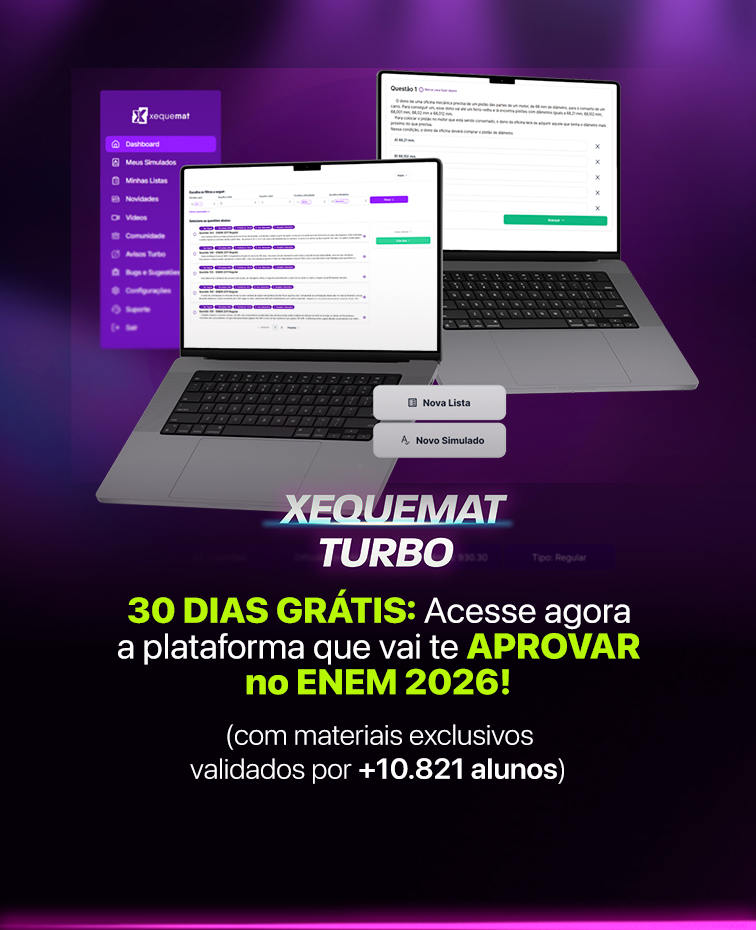 Vem pro nosso canal do Youtube e tenha acesso a aulas interativas, exercícios práticos, dicas e truques úteis, nosso objetivo é fazer você chegar ao 800+ no ENEM.